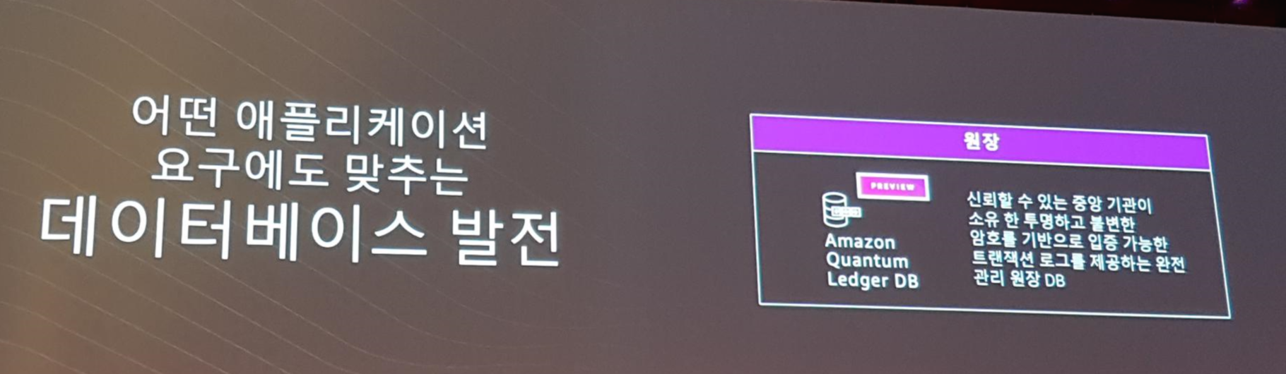 Amazon Quantum Ledger DB - 신뢰할 수 있는 중앙 기관이 소유한 투명하고 불변한 암호를 기반으로 입증 가능한 트랜잭션 로그를 제공하는 완전 관리 원장 DB