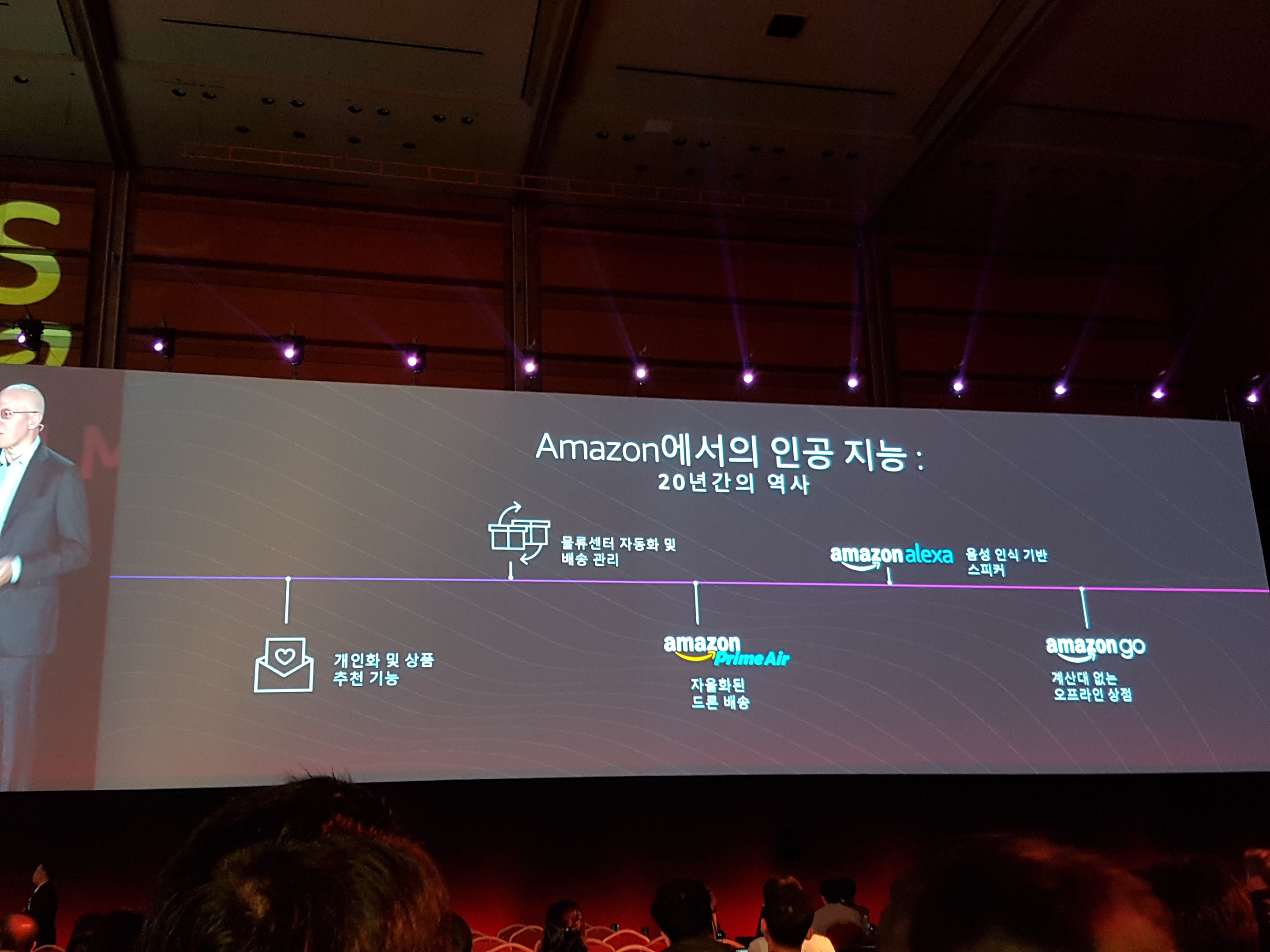대표의 인삿말을 마무리하고 AWS 부사장의 연설과 각 사례 발표자의 발표로 진행되었다.
