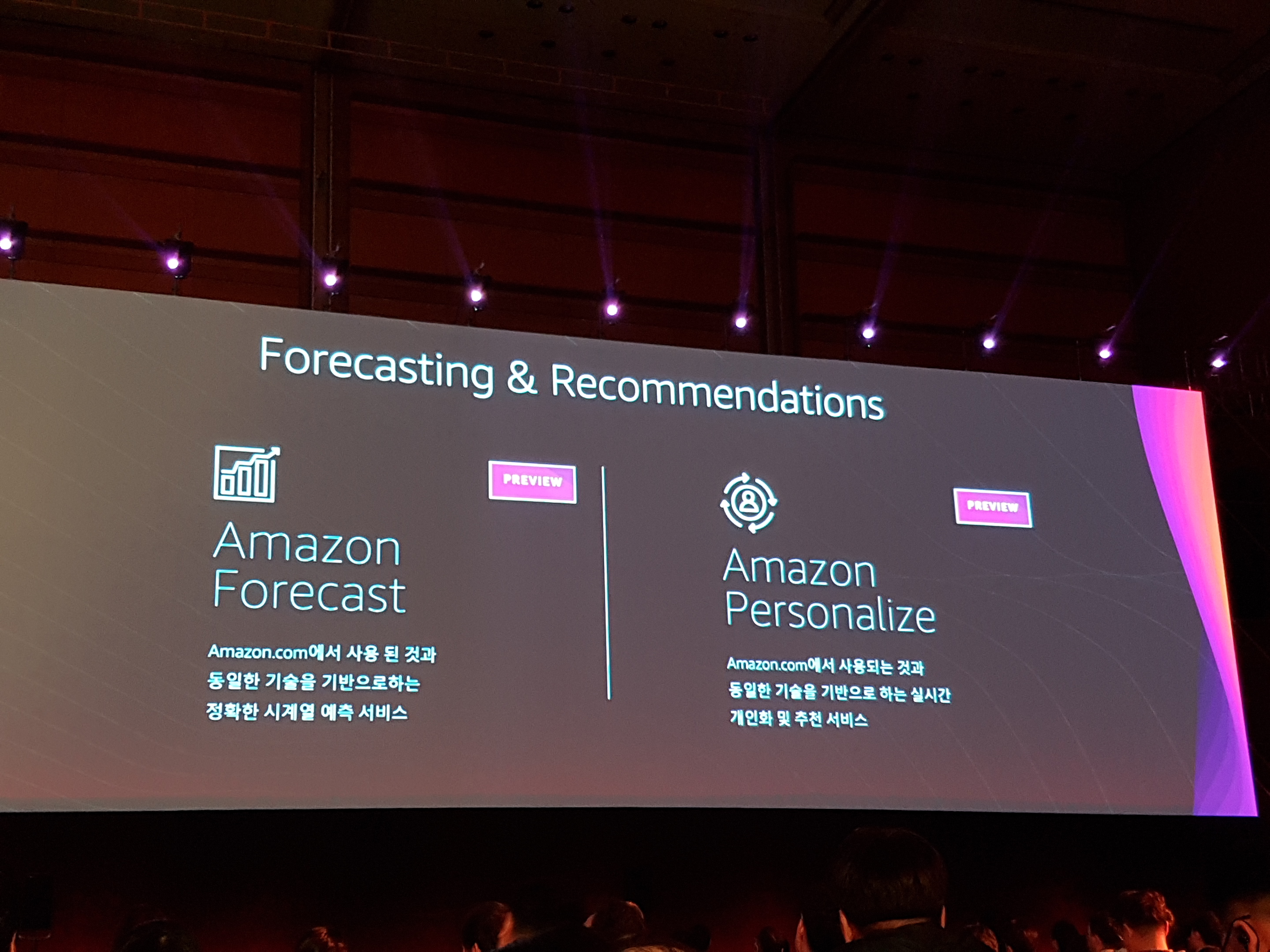 기조 연설 내용은 대부분 AWS가 ~~~ 서비스를 제공하고 ~~~것을 사용하면 된다. 하고 안내해주는 내용이다.