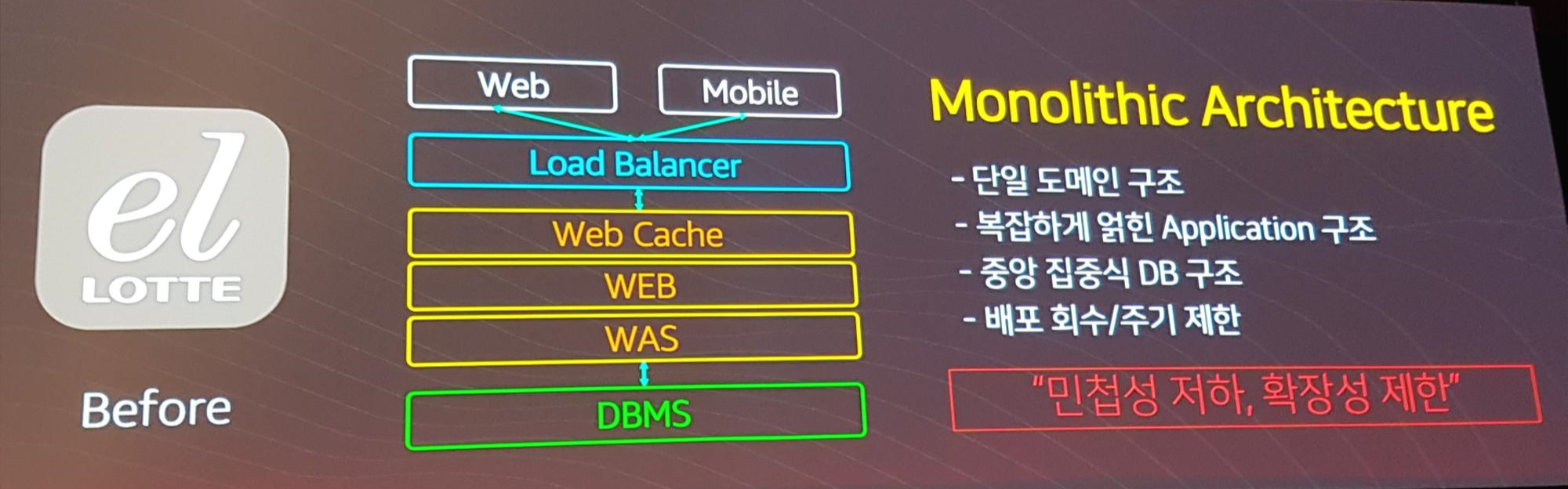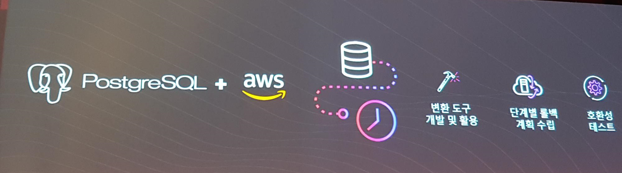 AWS Aurora 이전을 통해 라이선스 비용 절감, 관리형 서비스 활용, 오픈 소스 활용 경험 축적, 다양한 서비스 실험 가능 등의 이점을 얻었다며 삼성 측의 발표는 마무리 되었다.