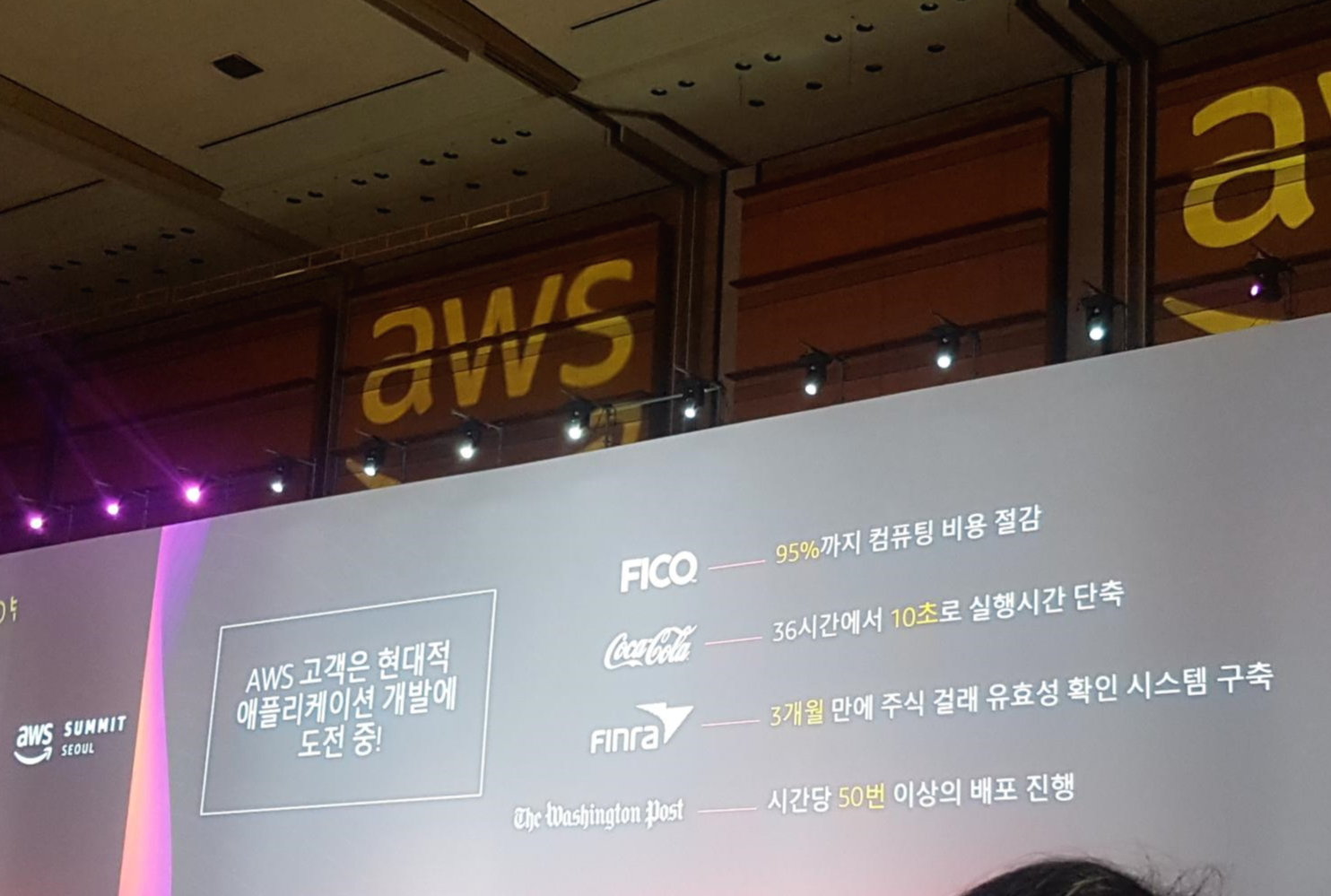 전문성을 띄는 AWS 관계자들의 기술 지식과 이미 도입해서 적용한 파트너사들의 사례를 공유받을 수 있는 자리는 참 의미 있는 것 같다.