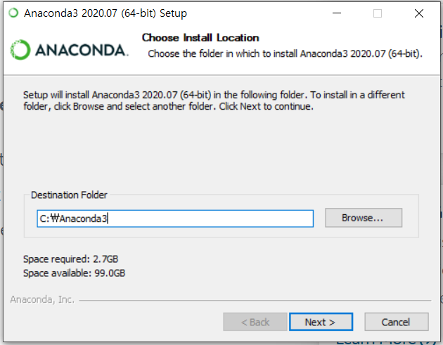 캡쳐를 못하고 넘어갔는데, Select Installation Type (설치유형 선택) 부분에서 Just me와 All Users 방식이 있는데 가능하다면 All Users 방식을 선택하고 다음단계로 넘어가자.