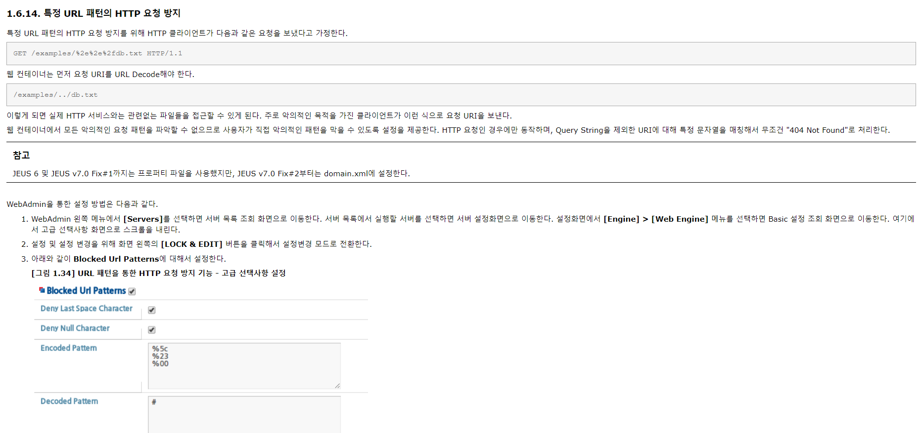 위 벤더사에서 제공한 문서에도 작성되어 있듯이 Blocked Url Patterns 에 기본적인 설정이 다 되어 있다.