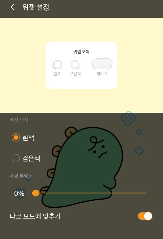여기까지는 다들 뜨는 화면인데, 이어버드를 귀에 꽂았을 때 위젯에 이어버드 배터리 잔량이 표시된다.