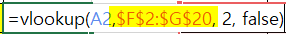그리고 위의 설명에 맞추어 아래와 같이 VLOOKUP 함수를 작성해보았다.