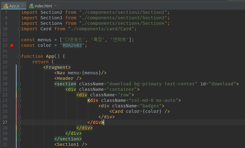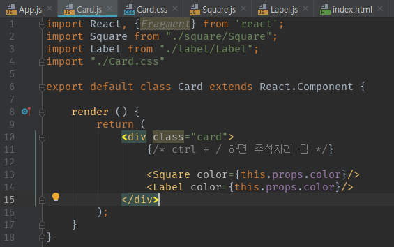 아니면 새로운 App.js를 구성해서 Card 태그만 넣어도 무방하다.