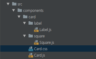 카드 구조는 색상이 나오는 square 부분과 무슨 색인지 표시해주는 label 영역으로 구성된다. 그리고 이를 Card라는 부모 컴포넌트에서 부르는 형태로 아래와 같이 만들었다.