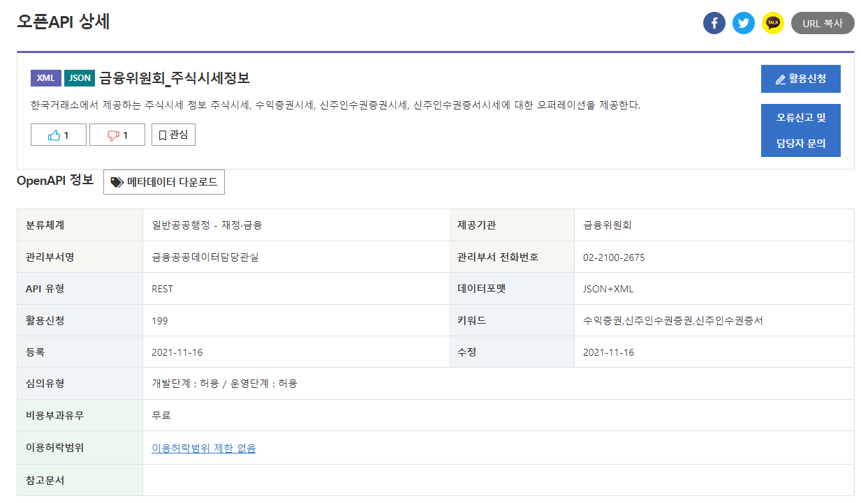 1. 공공데이터포탈 : 금융위원회 주식시세정보