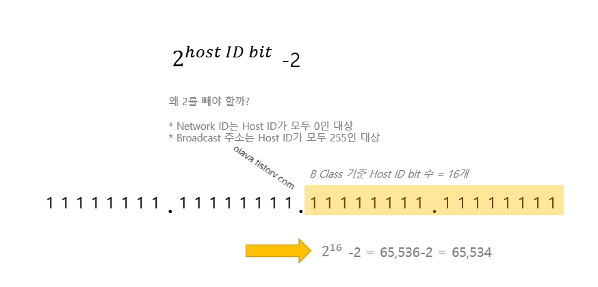 각 클래스별 Host ID 구간에 따라 IP 할당 가능 범위는 아래와 같이 계산할 수 있다.