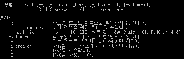 목적지까지 데이터가 전달되는 동안 통과하는 경로의 정보와 각 경로에서 지연시간 및 IP 확인
