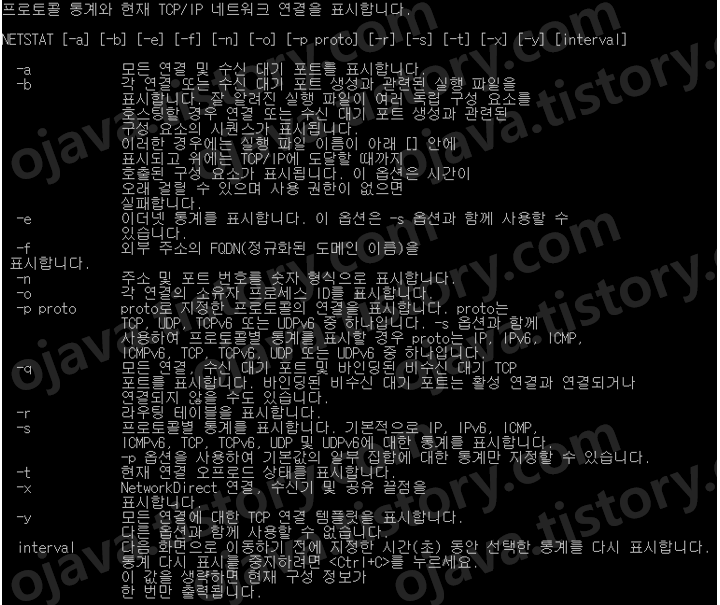 (ex. netstat -p tcp 또는 netstat -p udp)