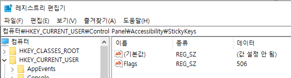 컴퓨터\HKEY_CURRENT_USER\Control Panel\Accessibility\StickyKeys
