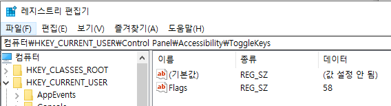 컴퓨터\HKEY_CURRENT_USER\Control Panel\Accessibility\ToggleKeys