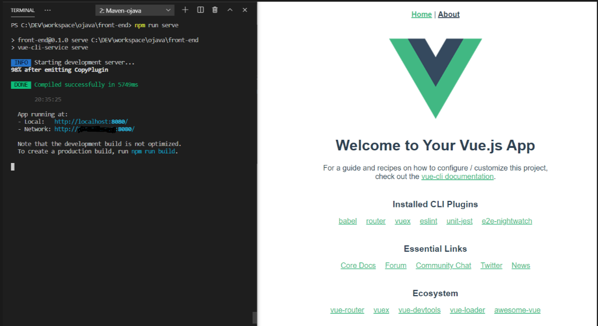 단, 포트 중에 8080이 이미 사용되고 있으면, vue.config.js 파일에서 다른 포트로 변경해야 한다.