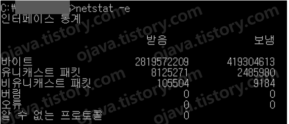 netstat -e로 이더넷 트래픽 통계치를 확인할 수 있고,
