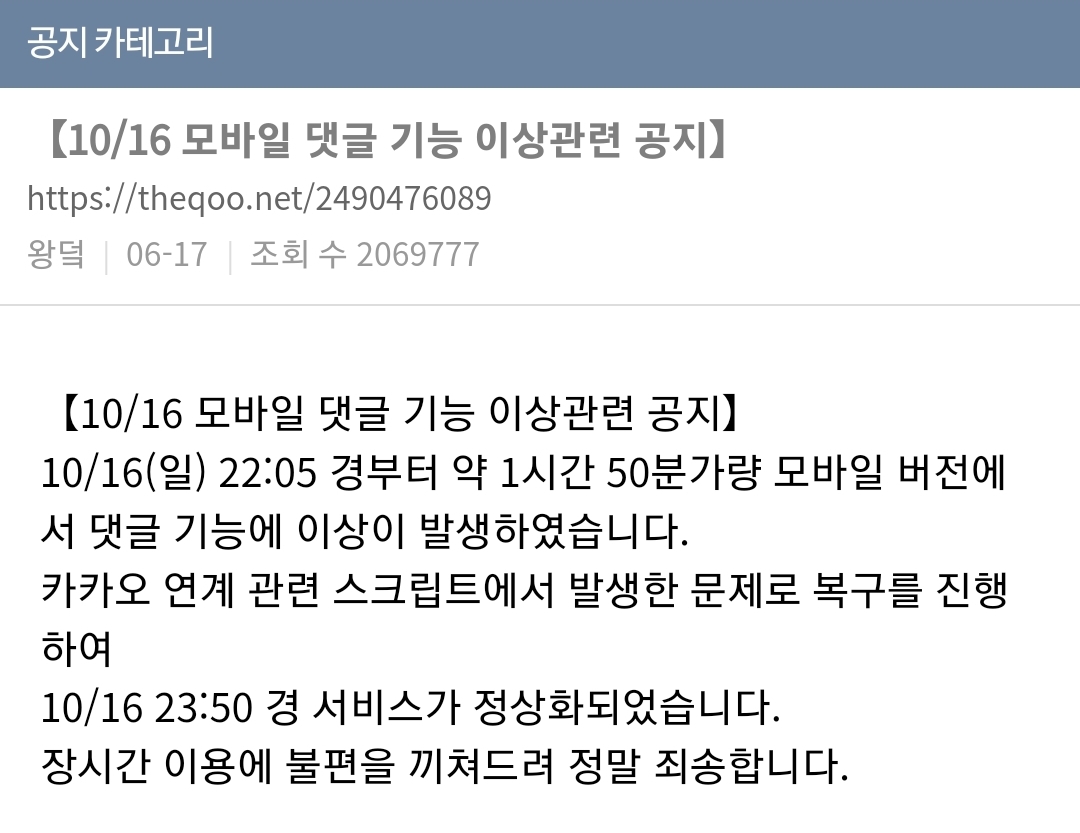 재해로 인한 장애였고 그 대응을 위해 주말도 반납하고 출근한 직원들에게는 심심한 격려를 보낸다.